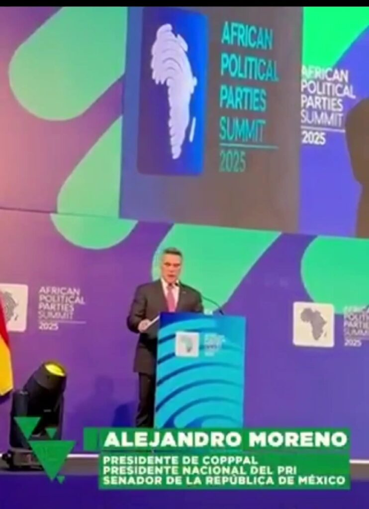 Addis Abeba, Ghana. 12 de agosto de 2025. En un encendido discurso durante la Cumbre de Partidos Políticos Africanos, el presidente nacional del PRI, Alejandro Moreno Cárdenas, denunció ante líderes internacionales la grave persecución política en México, señalando lo que calificó como una alarmante deriva autoritaria encabezada por el gobierno de Morena.