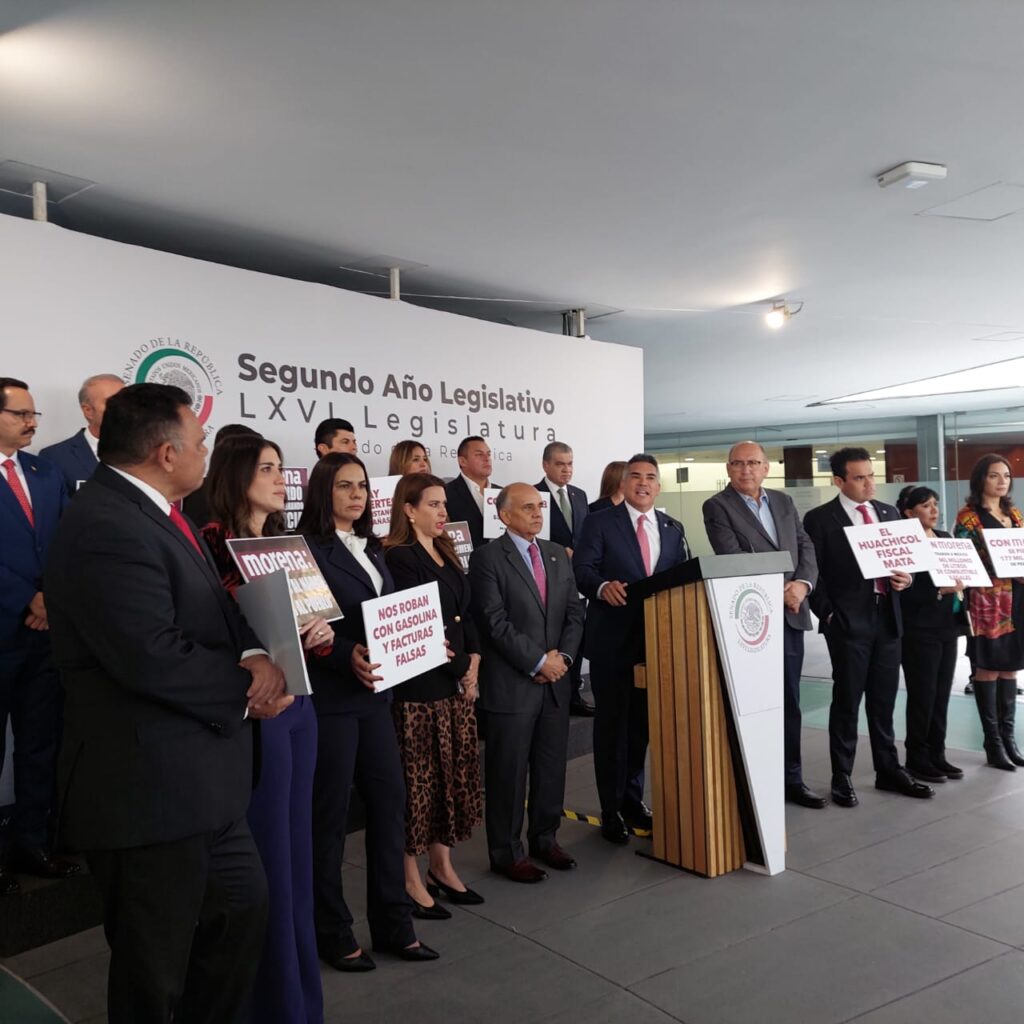 En conferencia de prensa ofrecida en el Patio del Federalismo del Senado el líder nacional priista expuso que: “no estamos ante un simple hecho de funcionarios corruptos, esto es un robo sistemático orquestado desde la Presidencia de la República desde 2018”, denunció el senador Moreno durante la conferencia de prensa ofrecida junto con el Grupo Parlamentario del PRI.